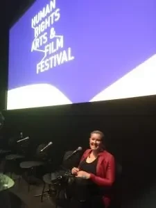 Amanda representing the team at the Human Rights and Arts Film Festival in Melbourne.
